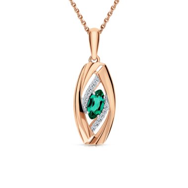 Подвеска с 60 бриллиантами, 0.10 карат, цвет 2, чистота 2, тип огранки Б; 15 изумрудами, 0.15 карат, цвет 3, чистота 3, тип огранки В; Розовое золото 585 пробы.