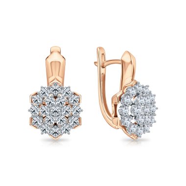 Серьги с 24 бриллиантами, огранка круг 17 граней, 0.053 карат, цвет 2, чистота 2, тип огранки Б; 2 изумрудами, 0.445 карат, цвет 3, чистота 3, тип огранки В; Розовое золото 585 пробы.