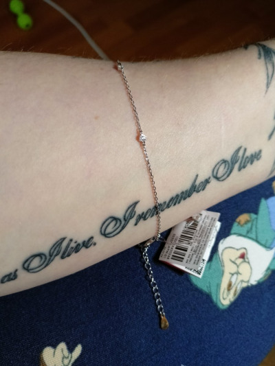 Браслетик очень качественно сделан. Вес 2 грамм нет,а прочный,плетение хорошее. По кругу цветочки мелкие с фианитами. Крепкий,прочный,качественный браслет на ногу. Очень довольна покупкой. Рекомендую .Выглядит простенько , а на самом деле красивый, браслет ,блестит . Добротный такой