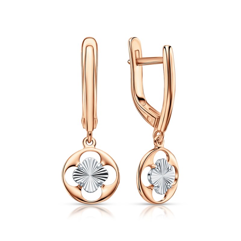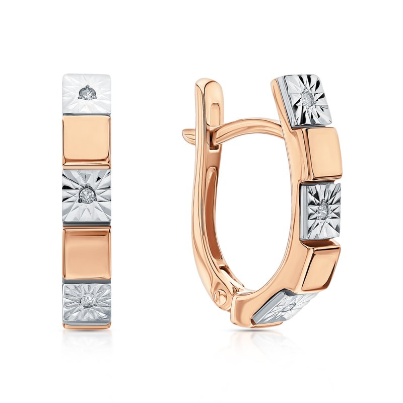 Серьги с 2 бриллиантами природными, 0.04 карат, огранка круг 57 граней, цвет 4, чистота 5, тип огранки А; 56 бриллиантами природными, 0.15 карат, огранка круг 17 граней, цвет 2, чистота 3, тип огранки А; Белое золото 585 пробы.