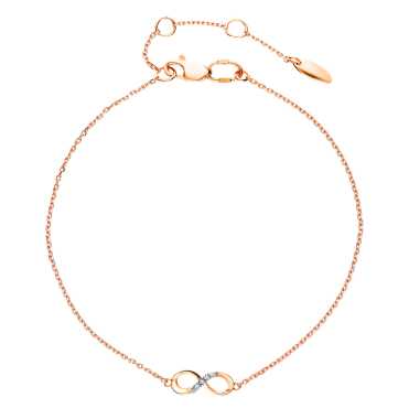 Очень изысканный браслетик на тонкой золотой цепочке со знаком бесконечности в россыпи бриллиантиков.Очень приятно и нежно выглядит!