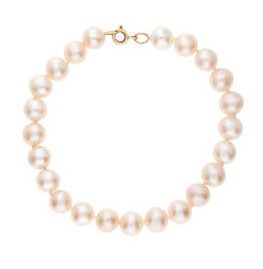 Красивый классический браслет. Между жемчужинами протянута белая ниточка. Застежка золотая, но выглядит тонковато.