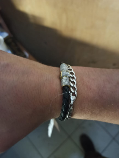Хорошее качество. Аккуратно сделано.В живую меньше, чем представлялся на фото с карточки товара. Диаметр кожаного плетения 5-6 миллиметров. На фото браслет- 20см.