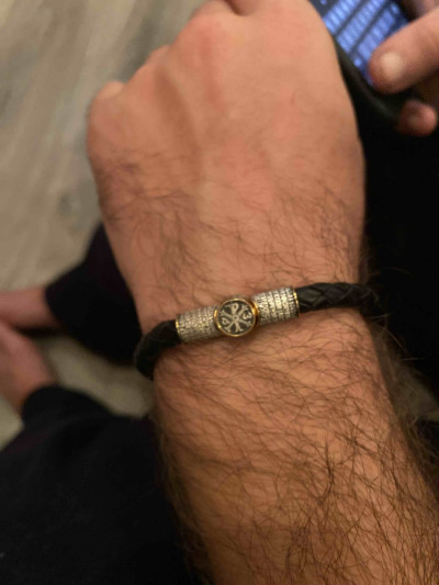 Браслет кожаный с серебряной вставкой Молитва Животворящему кресту. Высокое качество исполнения, надёжная застёжка. Больше спасибо за данную модель православной тематики!!!
