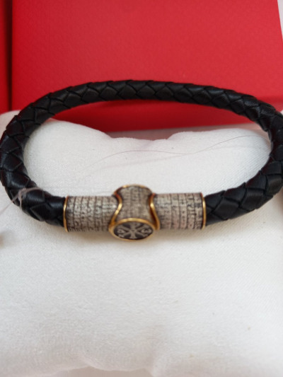 Кожаный браслет с серебряной вставкой и молитвой