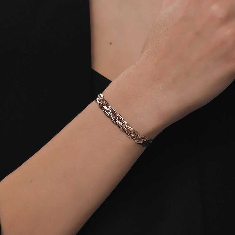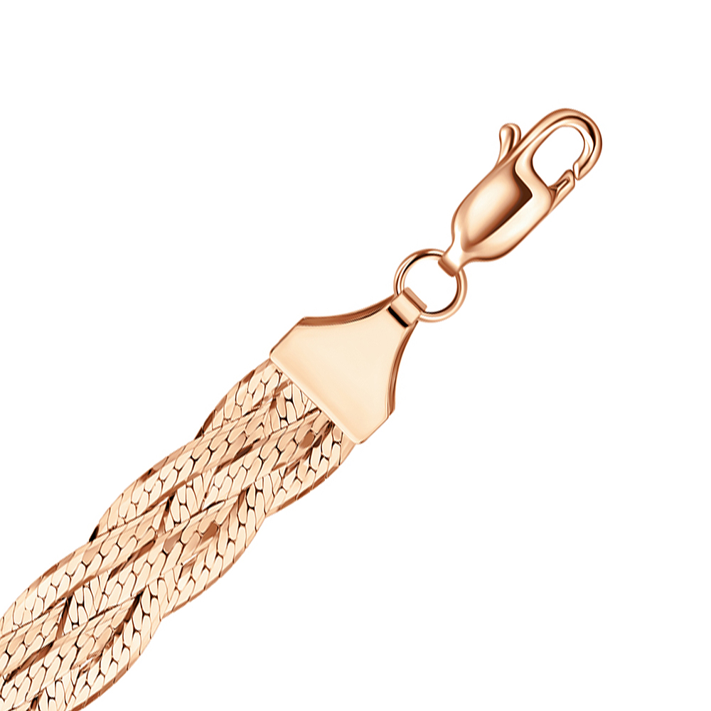 Плетение "Косичка" состоит из плоских, переплетающихся цепей. Такое украшение самодостаточно и не нуждается в дополнительных аксессуарах. Отлично держит форму, но требует аккуратного обращения.