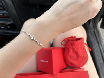 Браслет тонкий, изящный, сверкает. Главное, не цепляется за одежду. На мой взгляд, очень милый.