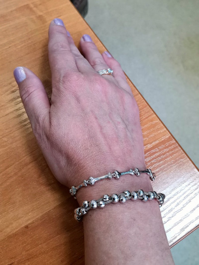 Браслет смотрится очень аккуратно и даже мило. Ношу не снимая. Можно в офис с костюмом или с джинсами, платьем... Ко всему подходит. Огромное спасибо!!! 💖🥰😍