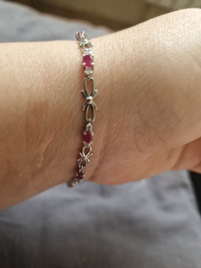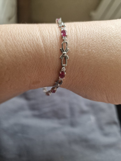 Серебряный браслет с фианитами и рубинами природными
