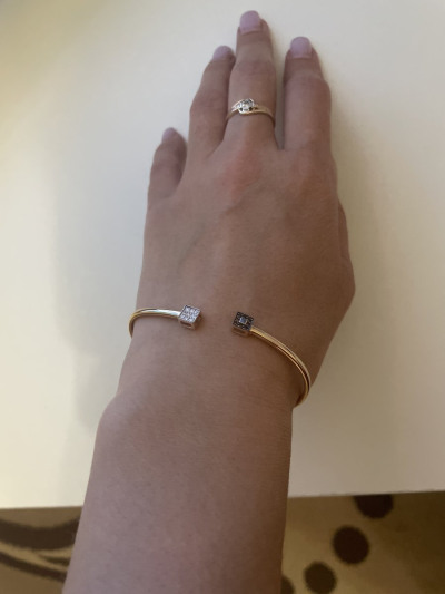 Браслет очень красивый, смотрится стильно и аккуратно! Легкий , на руке не ощущается, боялась, что будет цепляться за одежду, но все нормально! Он не цепляется