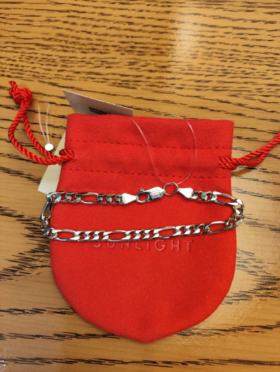 Такой тип панцирного плетения золотых цепочек имеет название "Фигаро". Основной особенностью является использование круглых и овальных звеньев, которые соединяются между собой в одной плоскости. Чаще всего в классической цепочке "Фигаро" 3 круглых звена чередуются с 1 продолговатым. Такое ювелирное изделие отлично смотрится в любой длине как индивидуальное украшение, так и в сочетании с кулоном.- Артикул190157