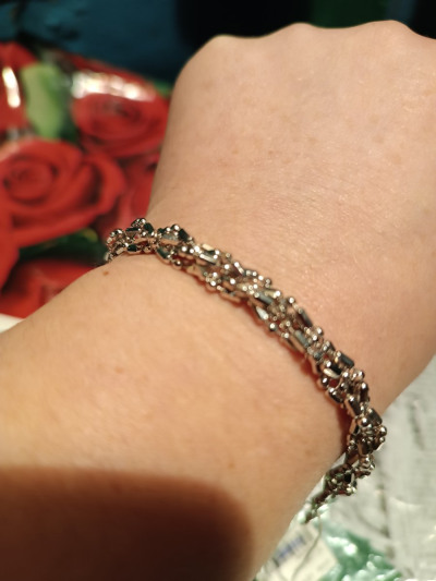Это любовь с первого взгляда,очень понравился браслет своей оригинальностью,круто блестит,хотя без камней,можно носить каждый день очень лёгкий на ручке!