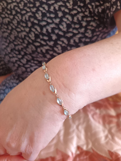 Браслет смотрится изыскано и нежно. Голубые камни подчёркивают красоту изделия и в тоже время вселяют в сознание глубину весеннего неба.