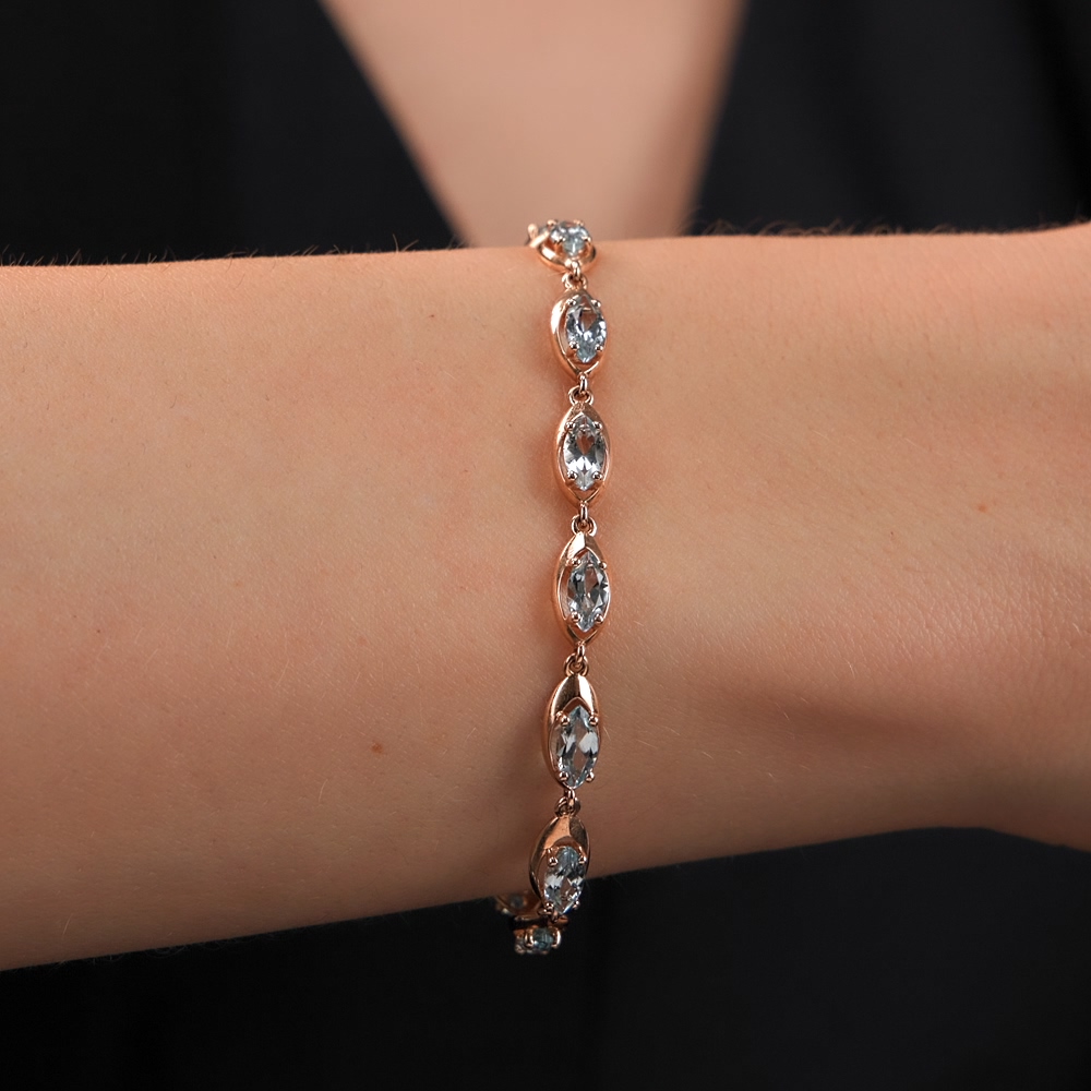 В редких случаях характеристики украшения или упаковка могут иметь отличия от представленных на фото или в описании.Браслет с 9 топазами, 3.83 карат, тип огранки Б;