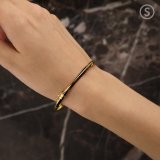 Легкий, тоненький, элегантный, браслет из желтого золота. На мое запястье ровно 18 см прекрасно подошел19 размер даже с небольшии запасом. Браслет овальной формы и очень удобно сидит на руке, невесомый, минималистичный, стильный. Замочек пока закрывается хорошо, как будет в носке, посмотрим. Довольна своим выбором, спасибо sl!