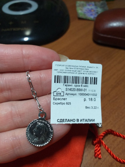 Подлинность украшения