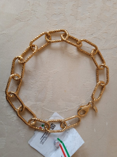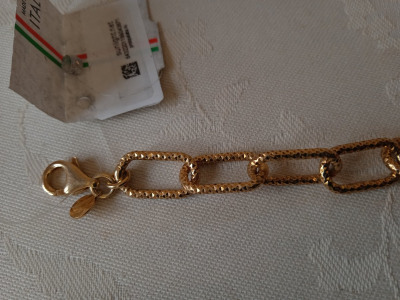 БРАСЛЕТ серебро с позолотой Италия, 9мм ширина звена, 17мм длина звена