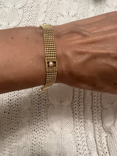 Долго выбирала между вариантом этого браслета в желтом или розовом золоте купить, но все-таки выбрала желтый цвет, так как на мой взгляд розовое золото сливается с цветом кожи и смотрится в итоге не так эффектно. А сама модель браслета безупречна!