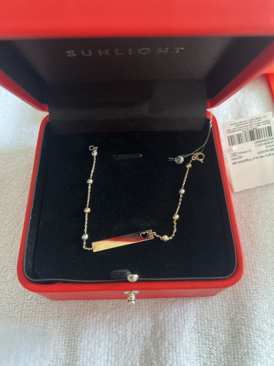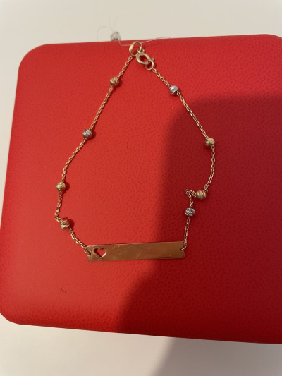 Отличный браслет с пластинкой и с шариками. В нем присутствует все виды золота : жёлтое, белое, красное . Рекомендую вам к покупке