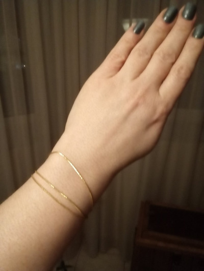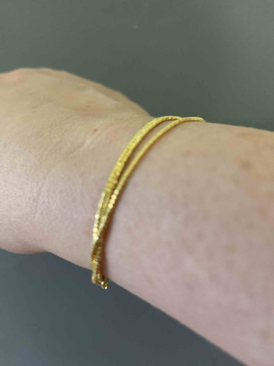 Браслет очаровал своей утонченностью, желтая позолота очень оригинально смотрится. Браслет переливается, струится, буду миксовать с триколором.