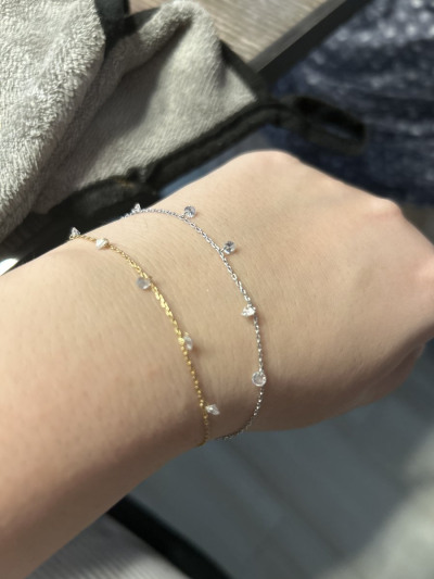 Милый тоненький браслетик. Камушки сверкают. Смотрится прекрасно. Я очень довольна!!!