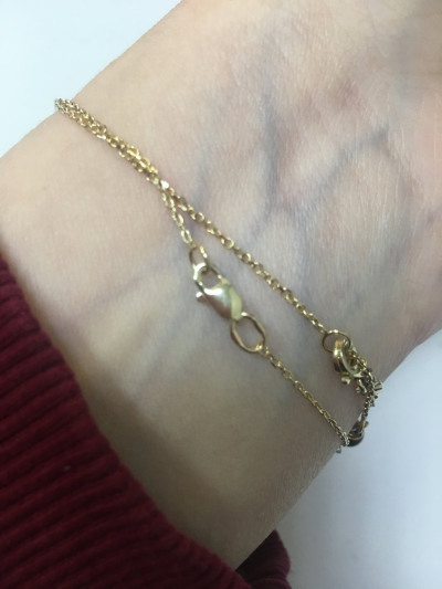 Тонкий браслет, ярко блестит. Боюсь потерять, т к совсем замок маленький. Качество хорошее. Фианиты блестят. Нарядный. Не на каждый день.