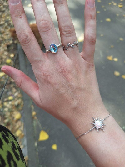 Серебряный браслет с синтетическим опалом