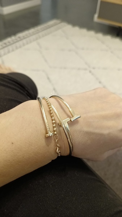 Моей дочери все очень понравилось , блеск браслета , удобство одевания никаких там застежек. И милая девушка которая помогла выбрать браслет гвоздик .