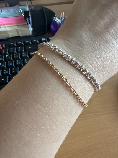 Отличный браслетик, легкий, а выглядит как будто в нем не менее 5 грамм. Стиляжный.