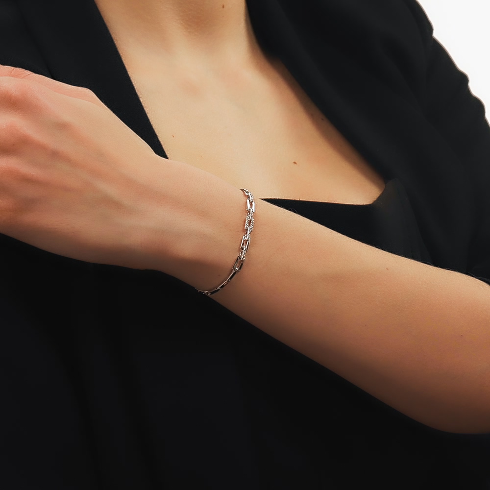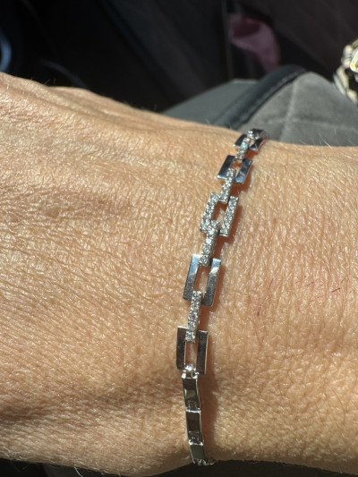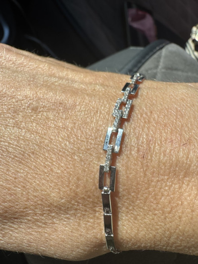 Заказывала 2 браслета на выбор. Остановилась на этом. Модный дизайн, а россыпь бриллиантов удивительно переливается на солнце. Спасибо за скидки.