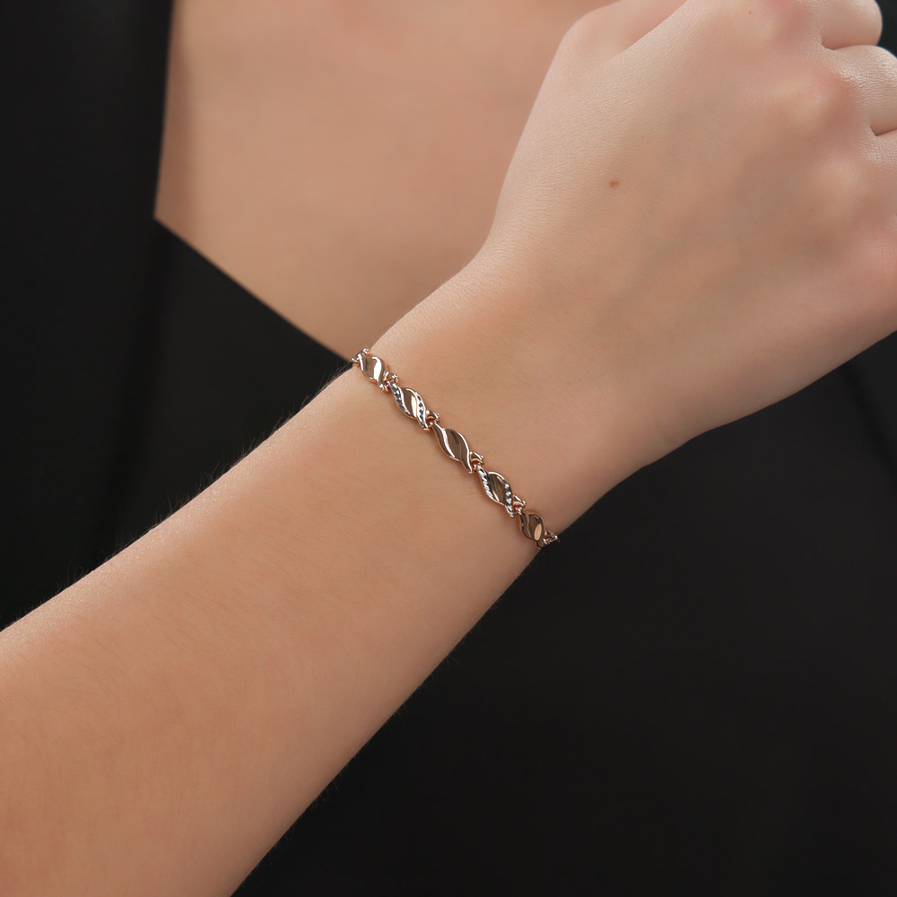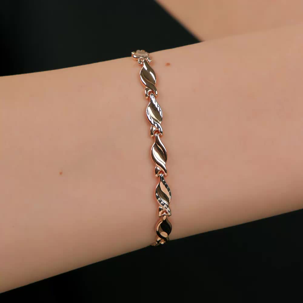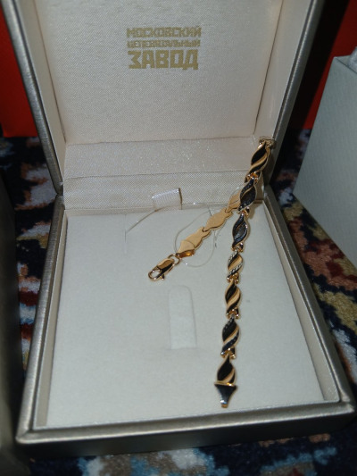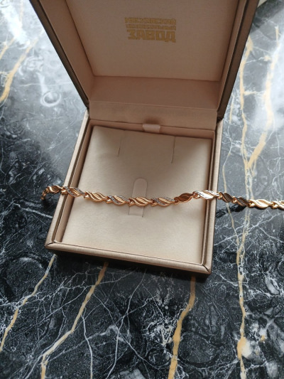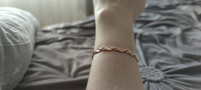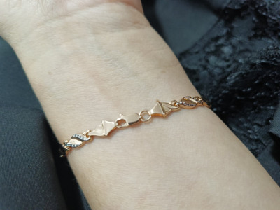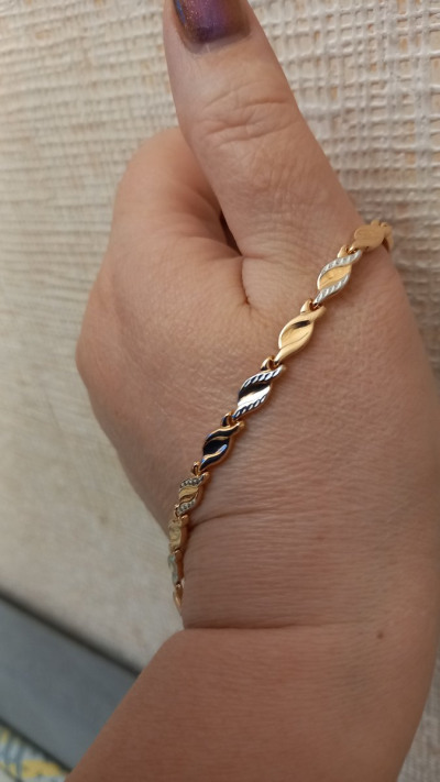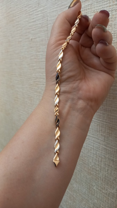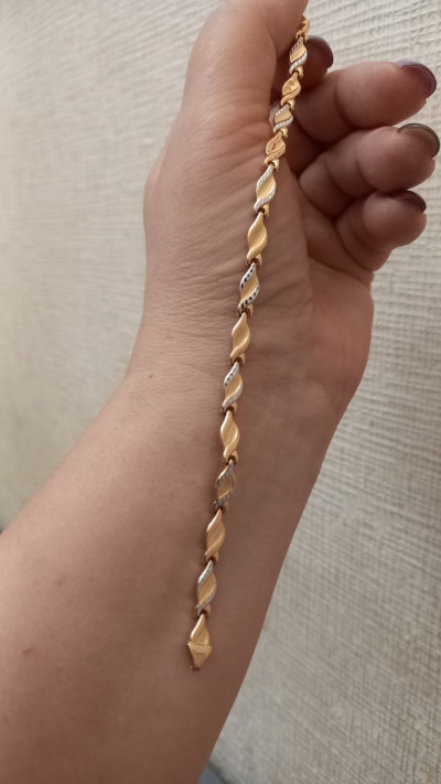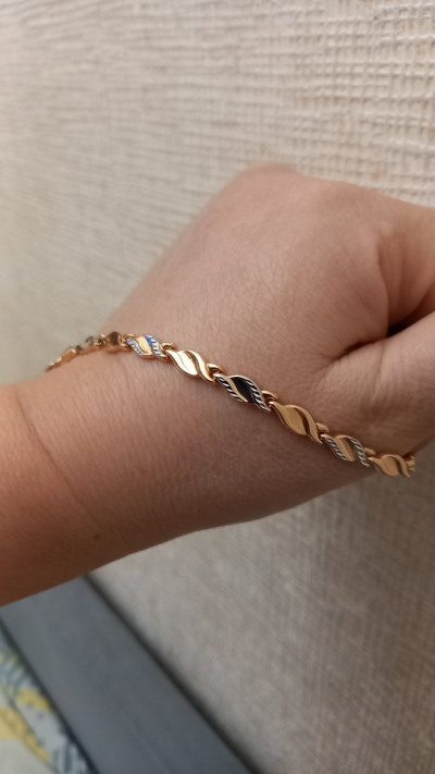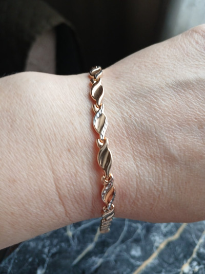 Браслет крупный, сочетает в себе розовое и белое золото. Идеально впишется в любой ювелирный гардероб. Единственный минус, маленький замок, застегнуть браслет самостоятельно, сложно, но возможно.