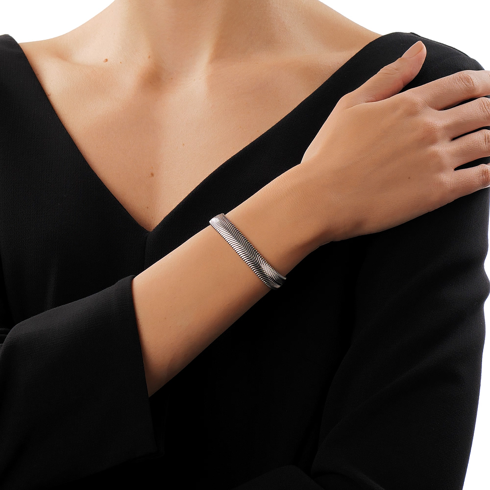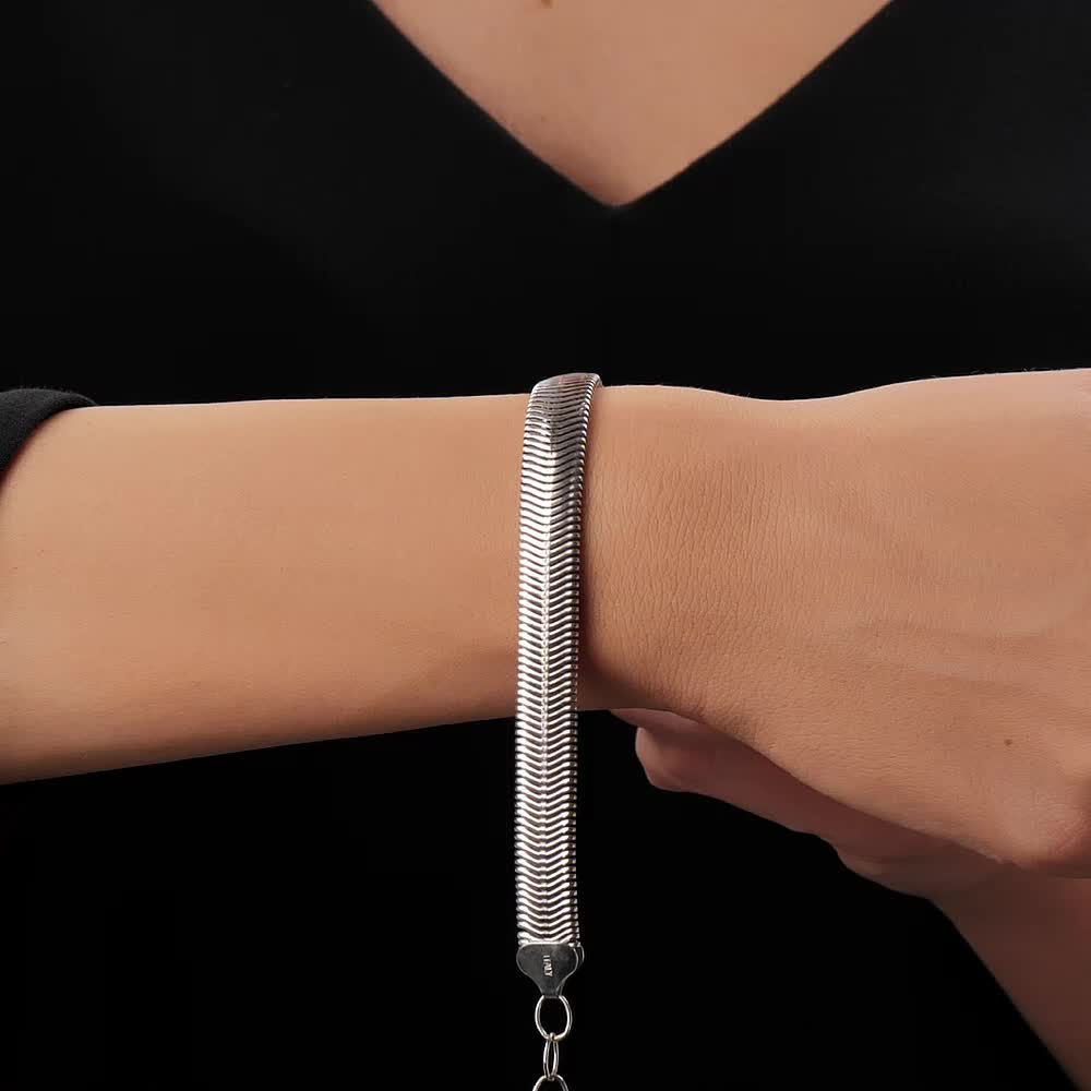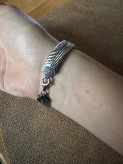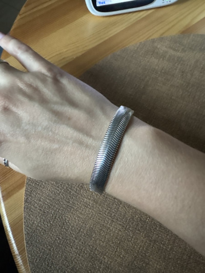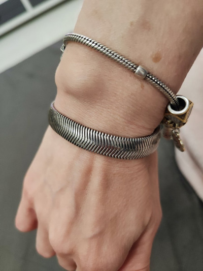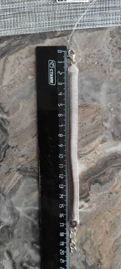 Широкая змейка, на руке выглядит богато, единственный минус это тонкая дополнительная цепочка удленняющаяя размер. Хотелось бы ее сделать потолще