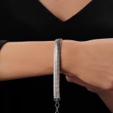Браслет действительно шикарен! Вес 12 гр, но на руке не ощущается. Игра света отличная! Мне сложно подобрать браслет, т.к. узкое запястье. Заказала 16 размер, сёл отлично. Не болтается и не в притык. Очень довольна оригинальным изделием.