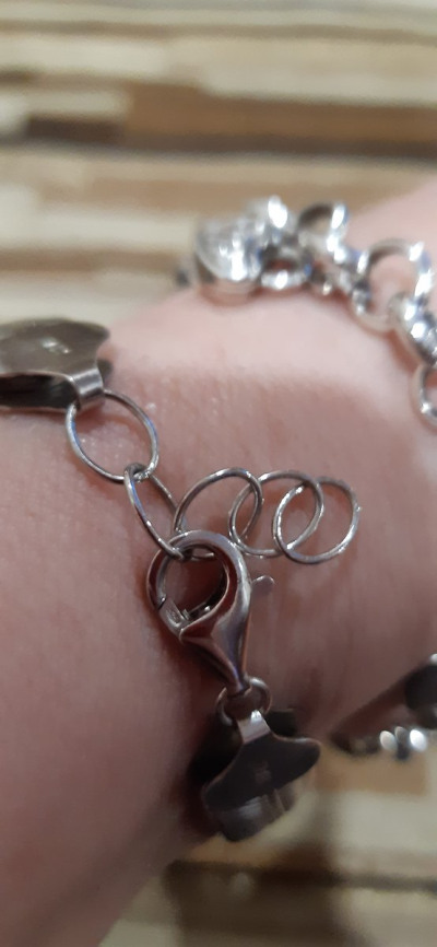 Смотрится на руке роскошно! На свой размер запястья 16 взяла длину 18-21, чтобы не носить на дополнительных колечках, очень хлипкие. А так великолепно, очень красивый