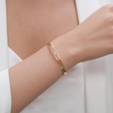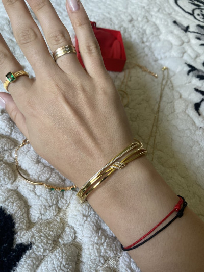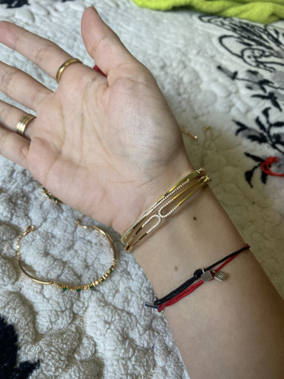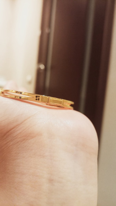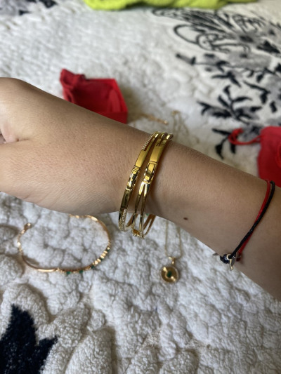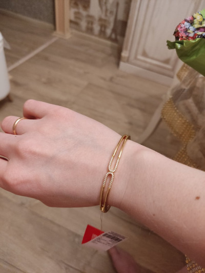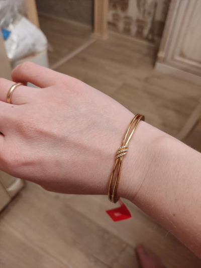 Красивый браслет, абсолютно вписался в золотой гарнитур, разница почти незаметна. Хорошая цена, плюс наличие нужного размера сделали своё дело: я всё таки его купила. Всё отлично, позолота не облезает, при аккуратном использовании проблем никаких нет. Очень довольна покупкой.