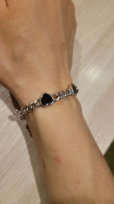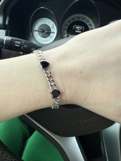 Очень красивый браслет.Приятный к телу.При не малом весе, совсем не тяжёлый.Покупала к крупному кольцу в виде сердца(чёрная эмаль+ фианиты) и к пуссетам тоже в виде сердец(чёрная керамика+ один фианит).Комплект просто супер.Спасибо ювелирам и конечно САНЛАЙТ🤗🌞