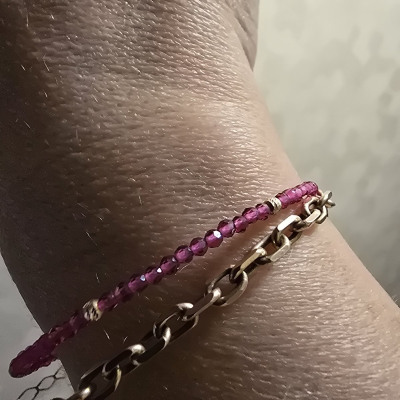 Браслет рубиновый на проволоке. Сделан аккуратно, но мелковат для меня. Думала будет крупнее.
