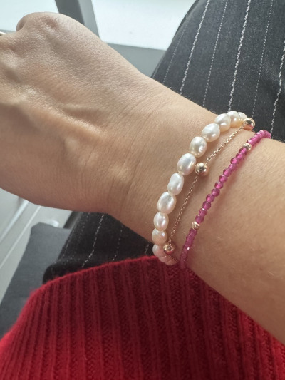 Красивый браслет с рубинами, очень нежный и эффектно смотрится на руке. Камни сверкают и празднично блестят. Золотые бусины оттеняют яркость камней, создавая неизгладимое впечатление.
