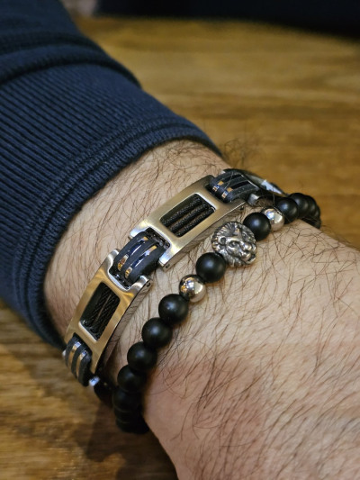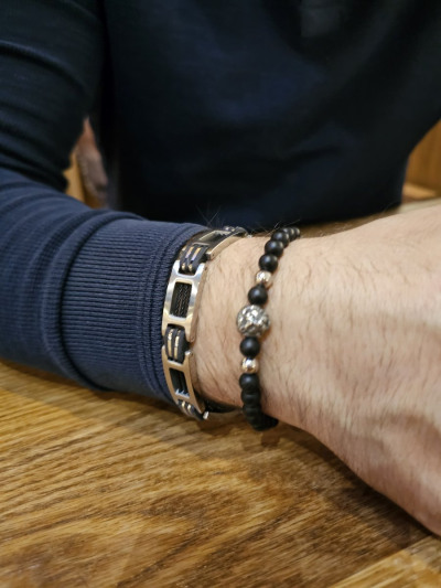 Стальной браслет с агатами природными