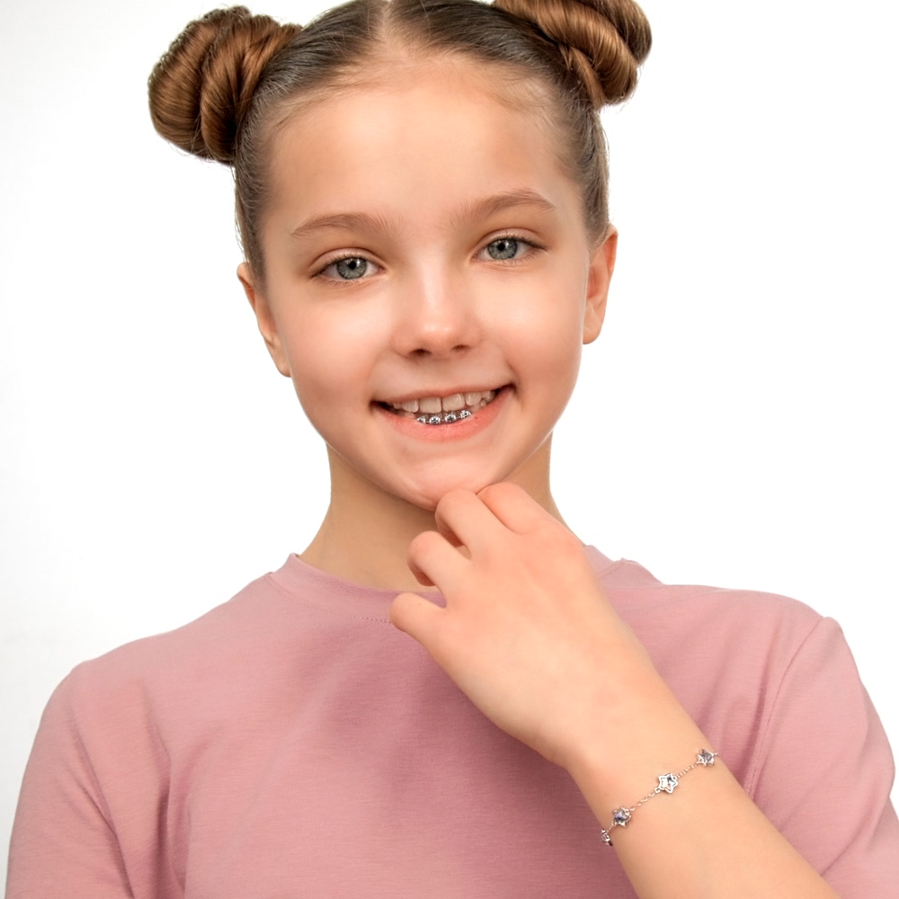 Выбирала на день рождения 10- ей девочки . Выбор пал на этот красивый браслет со звёздами . Смотрится аккуратно и мило .