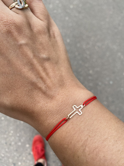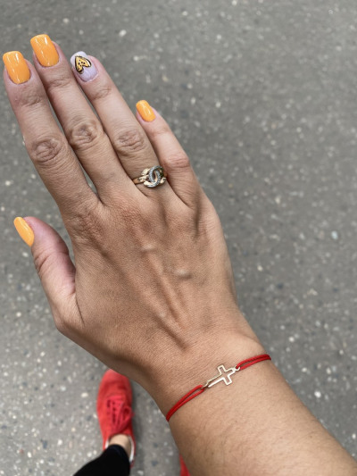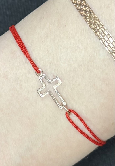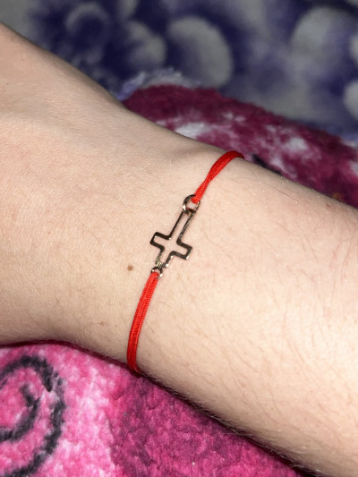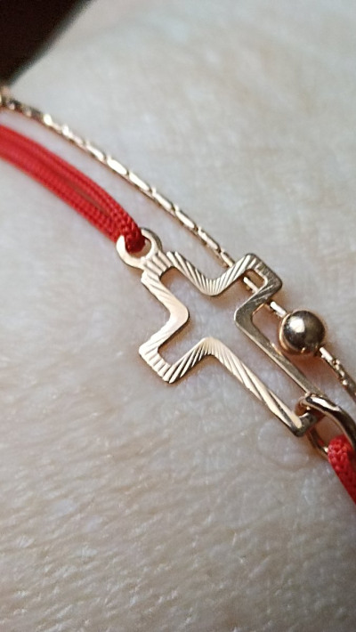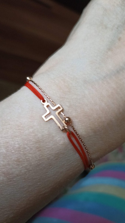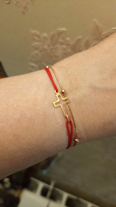 Стильный браслетик. Ношу такой с сердечком 375 пробы не снимая уже года три… нить не рвется. Надеюсь и этот прослужит нормально.