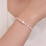 Стальной браслет с жемчугом отлично смотрится на руке!! Размер соответствует, собран на нитку. Жемчуг натуральный.