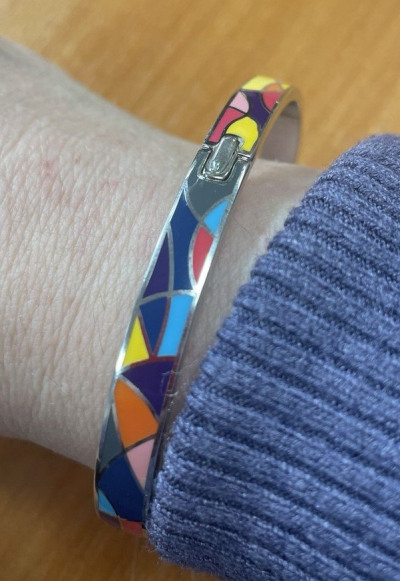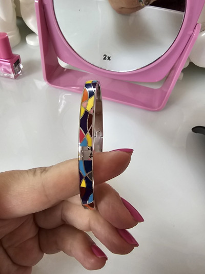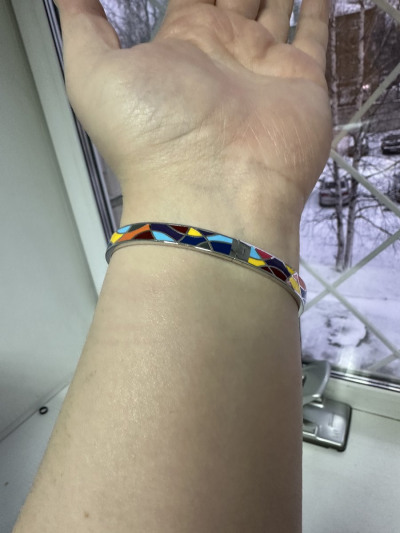 Очень стильный и обращающий внимание браслет, хорошая застежка, эргономичная форма, красивый яркий цветной рисунок эмали. Мне нравится