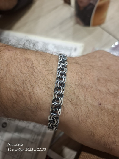 Красивое плетение, массивный, прочный. Заказала мужу размер 24. Очень понравился. Носит 4-й год не снимая. Со временем браслет немного увеличился в размере, отдали в мастерскую ювелиру, укоротили. Родственнику на подарок заказали размер 20. Тоже доволен. Оба браслета пришли по весу больше, чем указано в описании. Рекомендую.