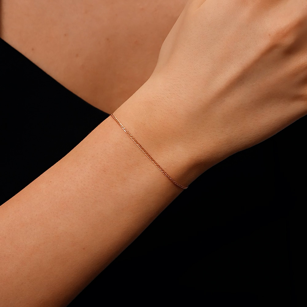 Браслет на подарок. Очень изящный тонкий, красивая вязка. Застежка браслета надежная. Цвет с легким розовым оттенком, переливается. Упаковка для подарка хорошая. Спасибо за качественную продукцию.