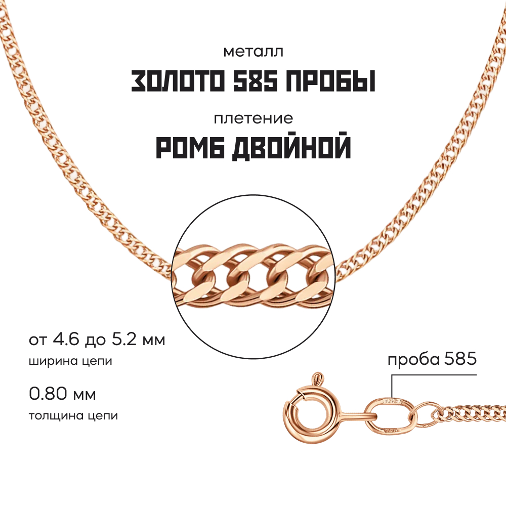 Цепочки с ромбом в основе плетения очень популярны и пользуются спросом. В этом случае каждое из звеньев представляет собой одноимённую геометрическую фигуру. Одинаковые противоположные углы или квадраты вытянутой формы составляют прочную конструкцию и красивое украшение. Это одна из классических форм плетений, но у неё есть несколько разновидностей.