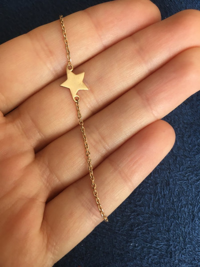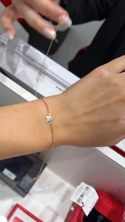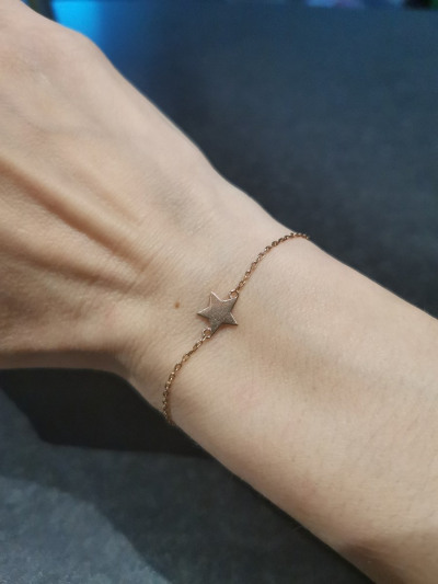 Муж подарил 4 года назад, ношу не снимая. Звездочка конечно поцарапалась вся, но от этого не стала хуже.На тонком запястье смотрется безумно красиво.