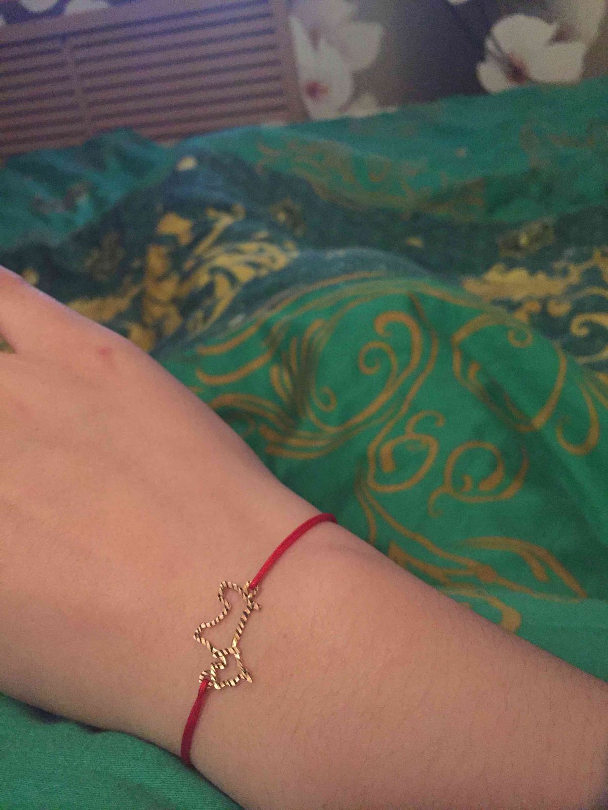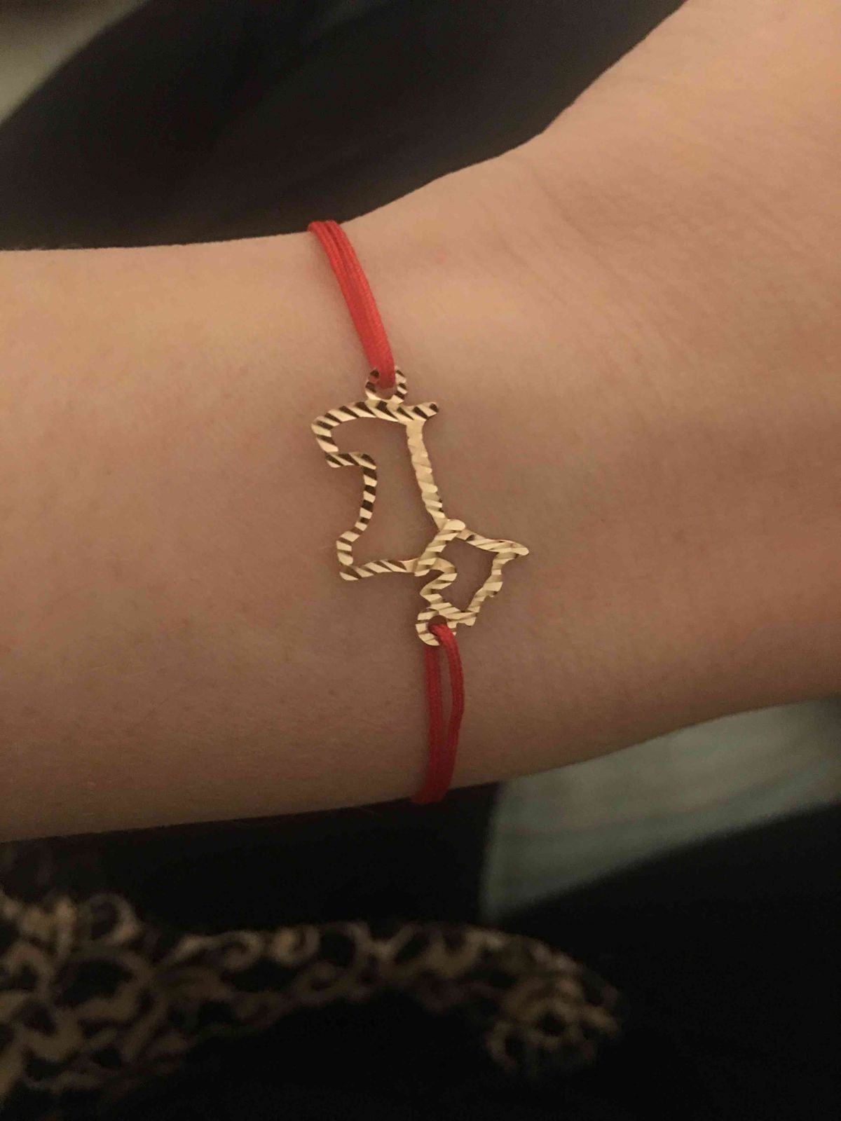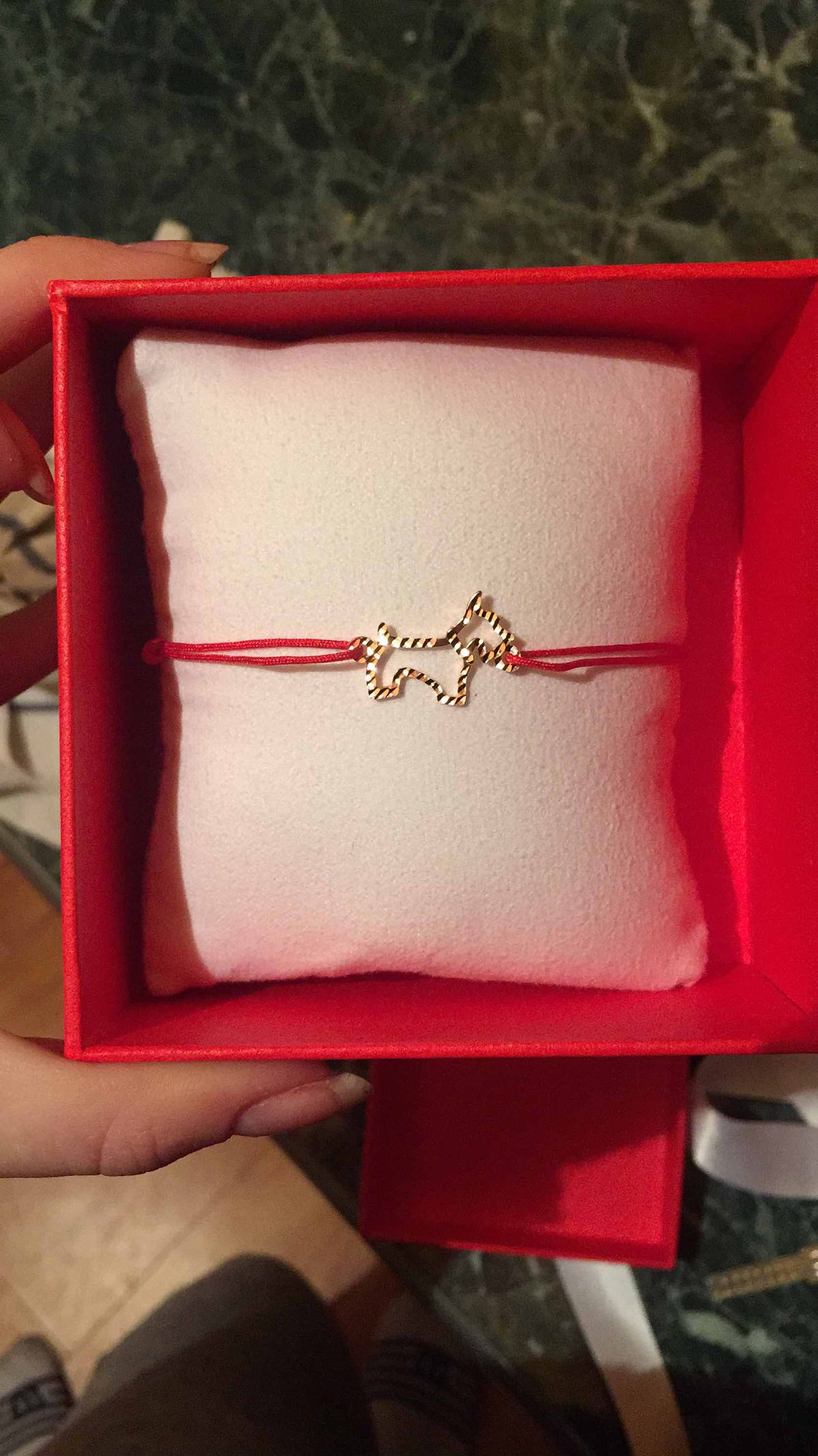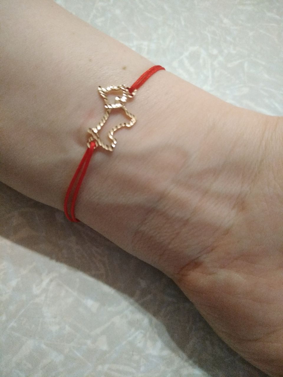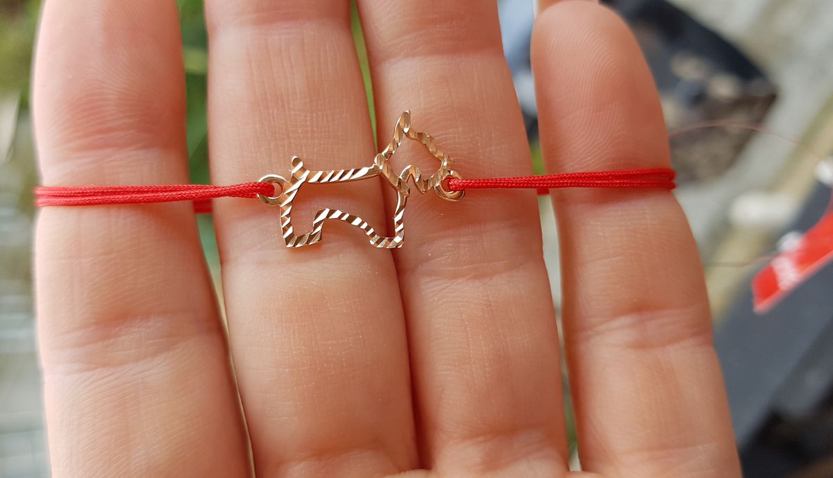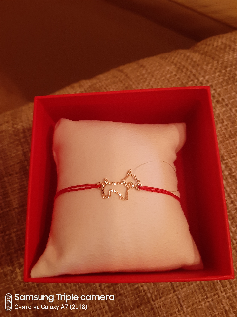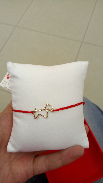 Красная нить на счастье с золотой собачкой! смотрится нежно, красиво, дорого! рекомендую!