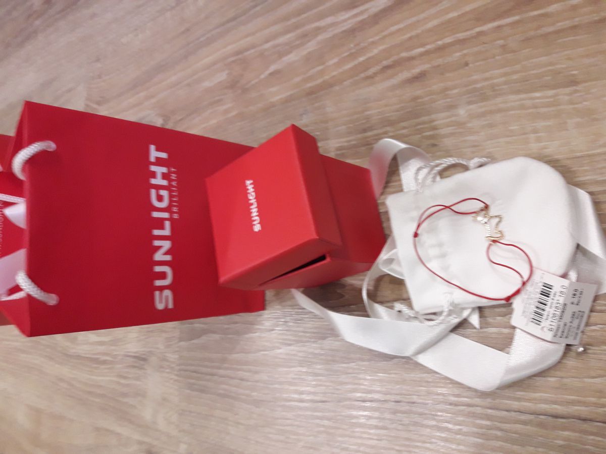 Браслет смотрится нежно, маленький, но детским не выглядит. Собачка блестит и переливается очень ярко. Огромный плюс упаковке! Заглядываешь в красивый пакетик с атласной белой ленточкой, а там красивая коробочка, перевязанная той же лентой. Открываешь коробку, а в ней красный мешочек), а в мешочке очень красивый и милый браслетик! Только вот пакетик при доставке немного помялся, но это не критично. Очень довольна покупной!
