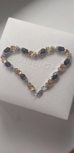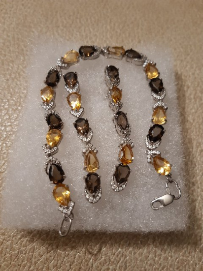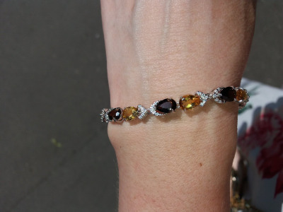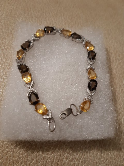 Браслет с раухтопазами, цитринами и фианитами. Приобретён к серёжкам аналогичным. Очень мелкий замочек. Сложно застегнуть даже посторонним. Себе тем более.